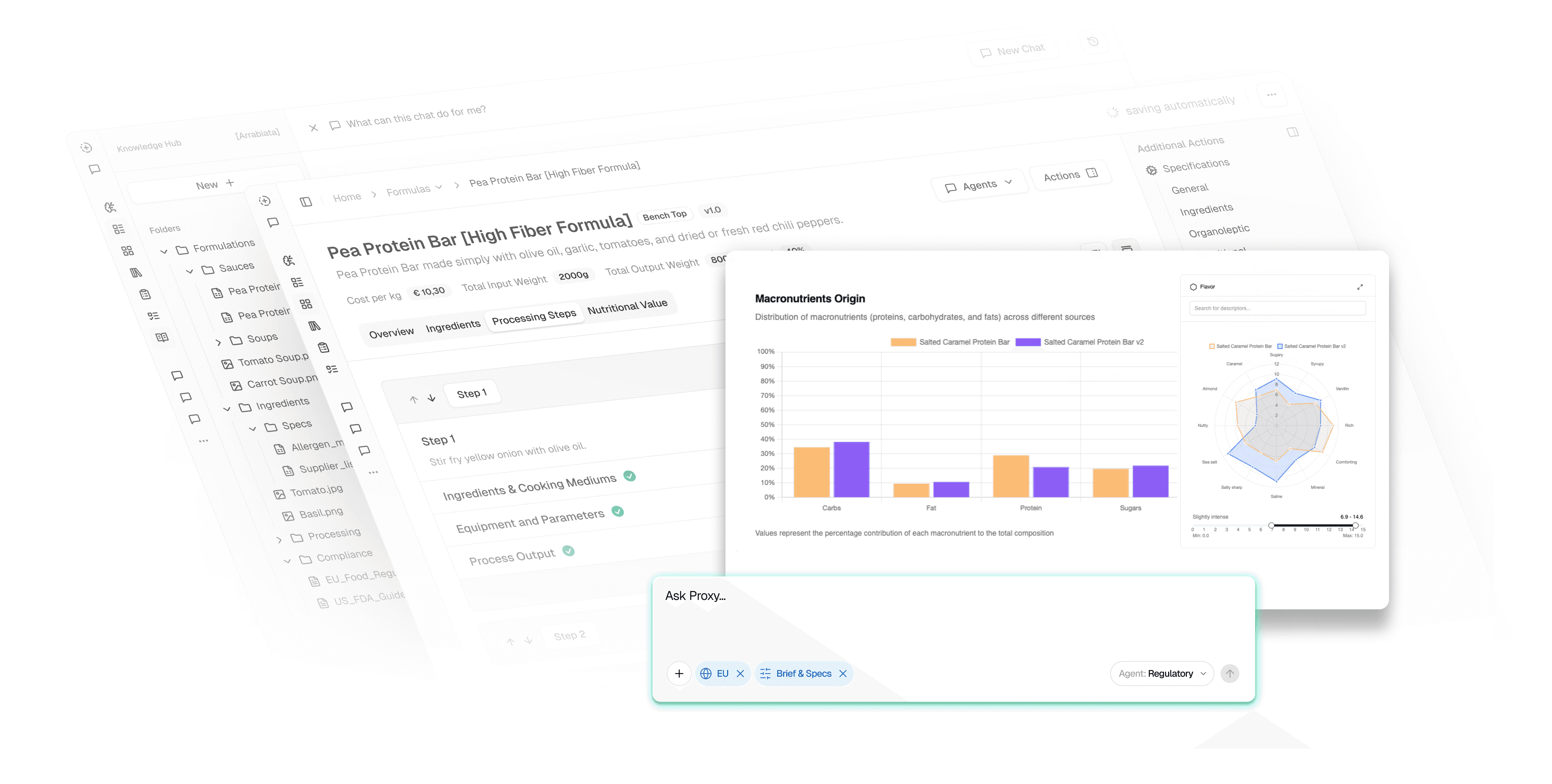 Proxy was built to change that — an AI-native platform that unites science, data, and technology to catalyze creativity and accelerate innovation of food product development.